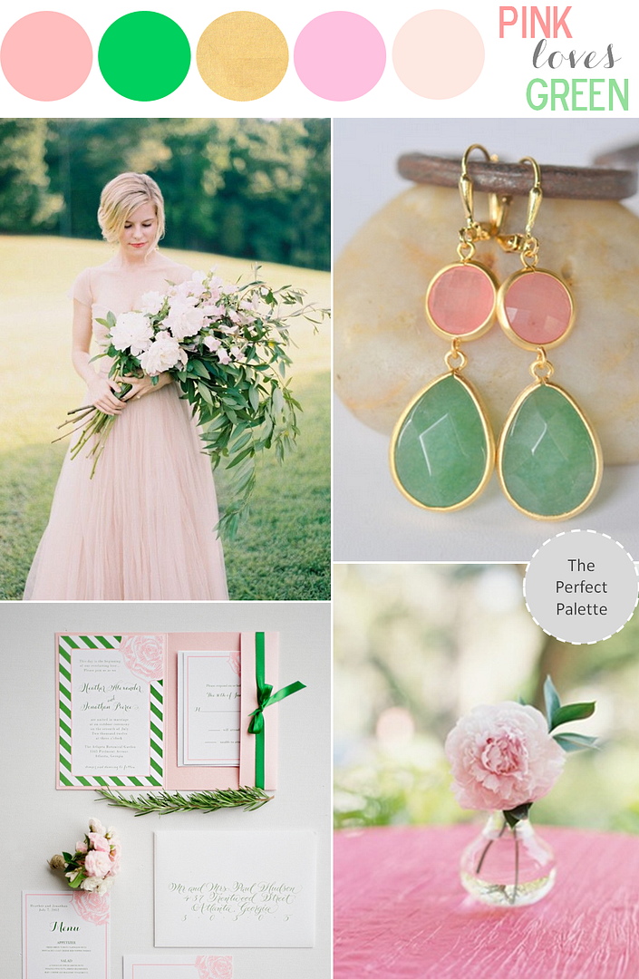 Shades of pink and green have long been a 'perfect palette' in my book. But have you ever considered adding a bit of antique gold into the mix? Elegant, sophisticated, and all kinds of pretty, these are the sort of colors that wedding dreams are made of!