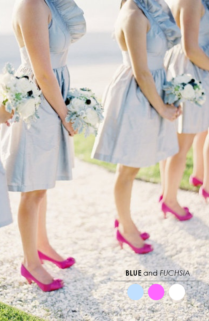 9. Blue + Fuchsia: What happens when shades of blue get mixed with fabulous fuchsia? All kinds of unexpected prettiness. That's what! It's a mix you don't see everyday and I really wish we would!