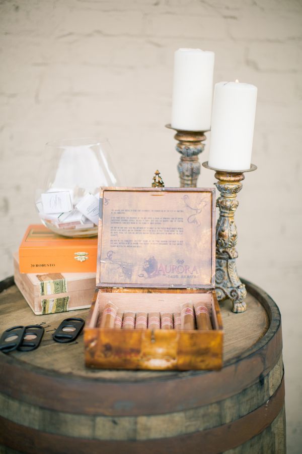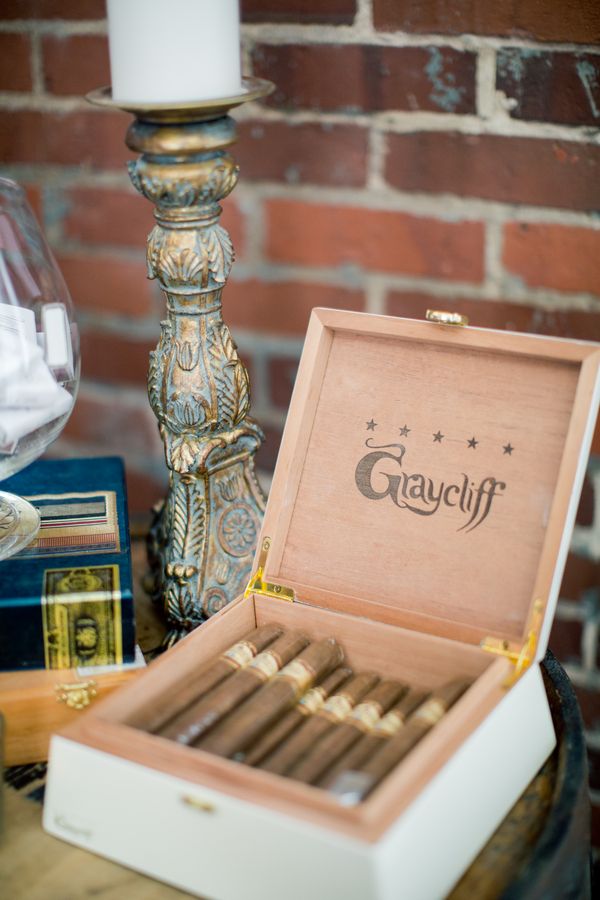 Michael and Claire had a calligrapher create their wedding monogram, which they used on everything from our invitations to napkins. From the farm style tables to the lace linens, every detail was carefully executed. I also love that cigars were stationed around the Depot on top of old whiskey barrels. Such a celebratory touch.