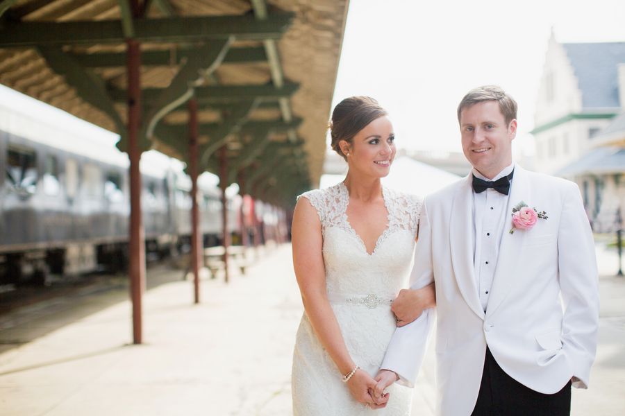 What a honest to goodness gorgeous wedding. One of my favorite details would definitely be the light-up letters that spelled out their new married name, “Sullivan.” They looked so pretty outside the depot, all lit up at night. Oh, and did you notice how Michael changed from the classic black jacket into a white dinner jacket for the reception? Who says that costume changes are only for the ladies? I really love this idea and it definitely evokes a very classic southern feel.