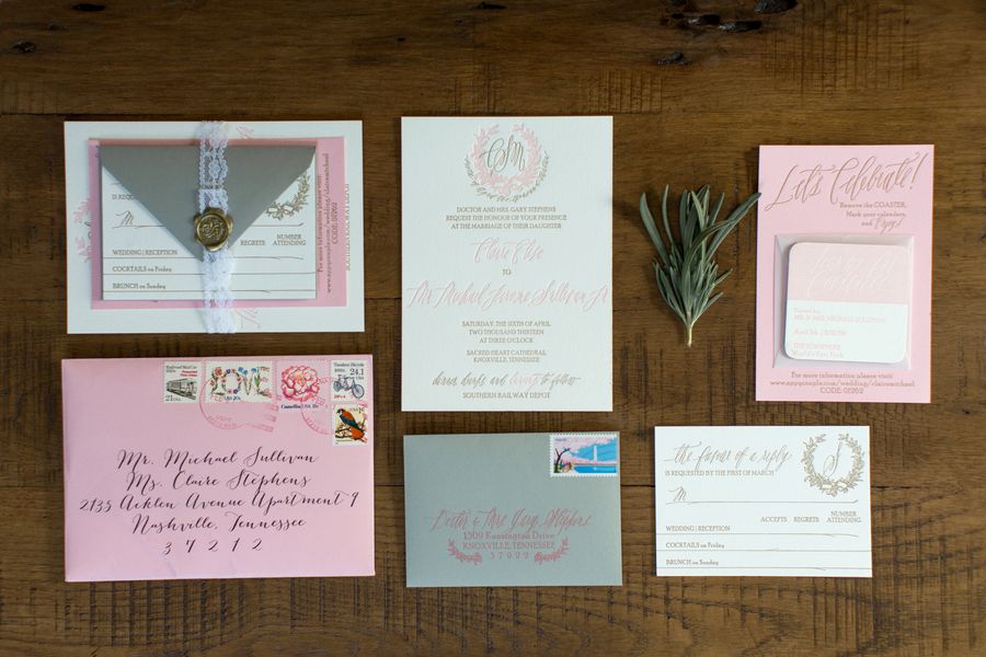 Confession. I'm a total sucker for Southern weddings! And so when I received this submission filled with classic details, fabulous florals and monograms galore you can only imagine my excitement! A Tennessee wedding at an old train depot? Mark me down for a Yes! Seriously, though, Claire and Michael's wedding day was absolutely beautiful. They were surrounded by family and friends and all kinds of prettiness thanks to Jennifer of Jennifer Laraia Designs. And lucky for us Watson-Studios was there to capture every special moment.