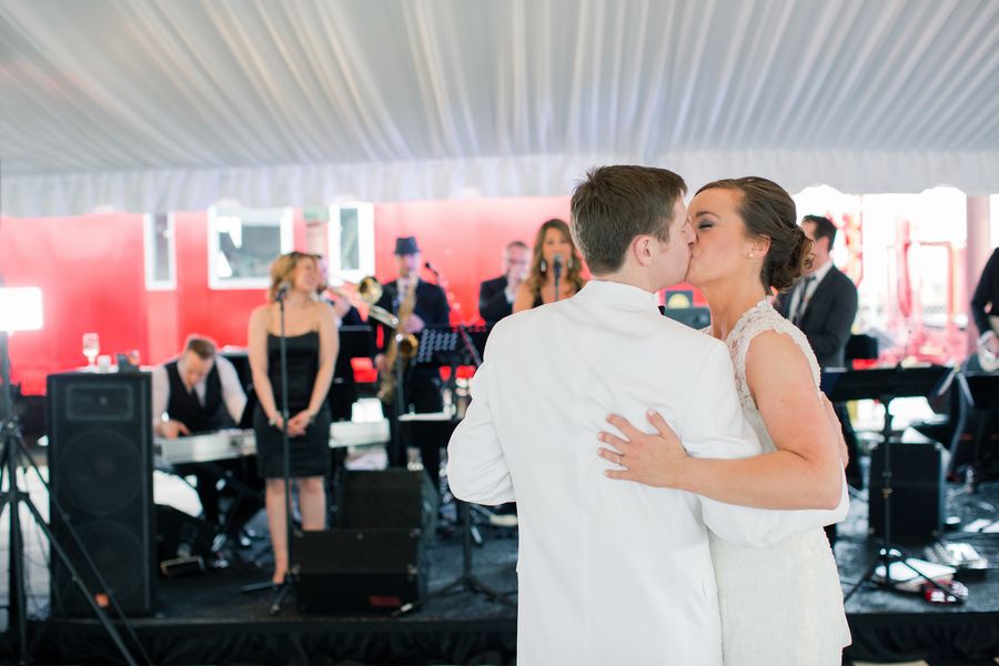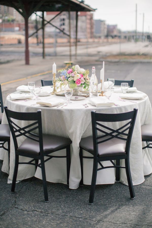Photographer: Watson-Studios // Transportation: A Regal Carriage Company // Equipment Rentals: All Occasions Party Rentals // Hair Stylist: Bangs and Blush // Calligrapher: Feast Fine Art & Calligraphy // Invitation Designer: Fourth Year Studio // Event Designer: Jennifer Laraia Designs // Bakery: Sugarbuzz Custom Cakes // Linens and Coverings: Table Five Linens // Band: The Downtown Band // Event Venue: The Southern Railway Depot // Floral Designer: Whimsical Gatherings