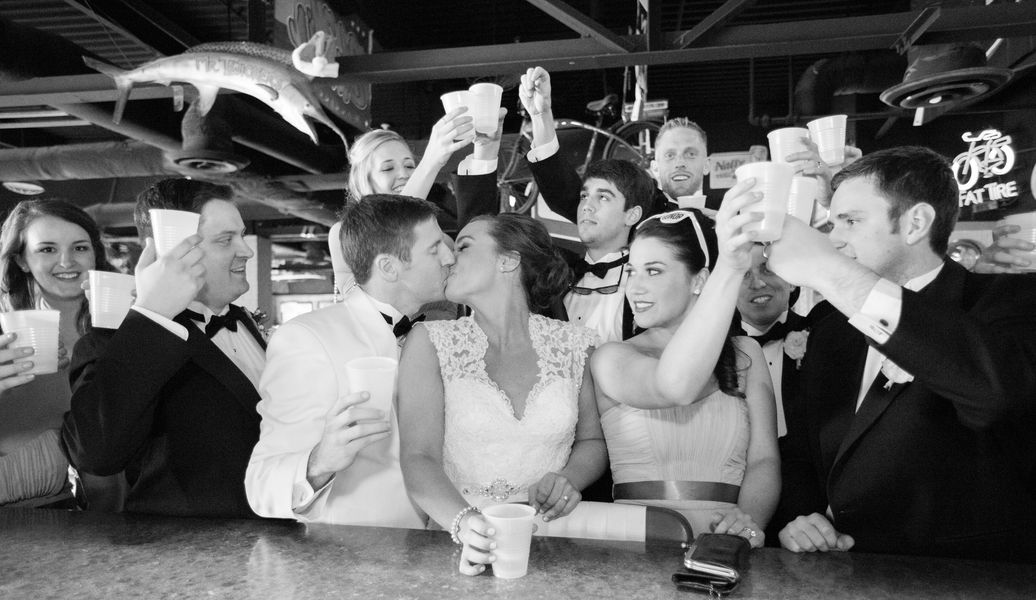 And did you notice those blooms? How could you not? I'm sorry but I am just having an absolute love affair with peonies and hydrangeas here lately, so it's really exciting to see that Claire incorporated those into her floral design. The soft colors and textures helped create a romantic setting at the old train depot in the middle of downtown Knoxville. Oh, and just because this wedding is full of classic, southern details don't think for a second that they forgot to throw in a few fun details!
