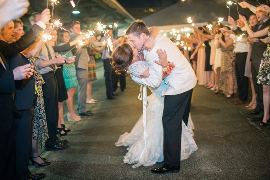 What a honest to goodness gorgeous wedding. One of my favorite details would definitely be the light-up letters that spelled out their new married name, “Sullivan.” They looked so pretty outside the depot, all lit up at night. Oh, and did you notice how Michael changed from the classic black jacket into a white dinner jacket for the reception? Who says that costume changes are only for the ladies? I really love this idea and it definitely evokes a very classic southern feel.