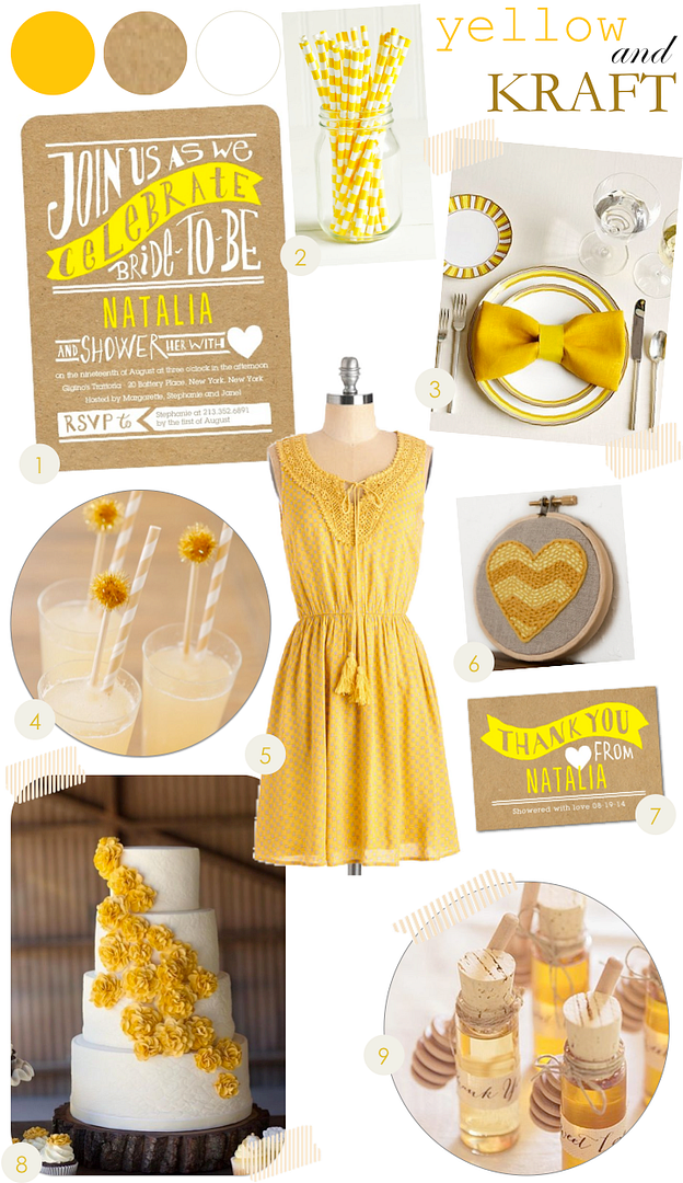 This color palette works great for any party. But I especially love it for weddings and bridal showers! This yellow sundress would make the perfect bridesmaid dress. And these invitations with the kraft paper background and the bold white and yellow lettering? Gah, I just love this color pairing! To get the look, be sure to shop the links below!