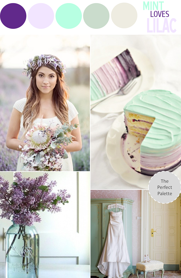 A reader recently requested that I put together a palette of lilac and mint. So here you have it! Romantic, elegant, and all kinds of pretty, these colors seriously have a way of taking me somewhere dreamy! So let's get down to the details! I'm absolutely loving the layered frosting look on this cake! So pretty. And I bet tasty too!