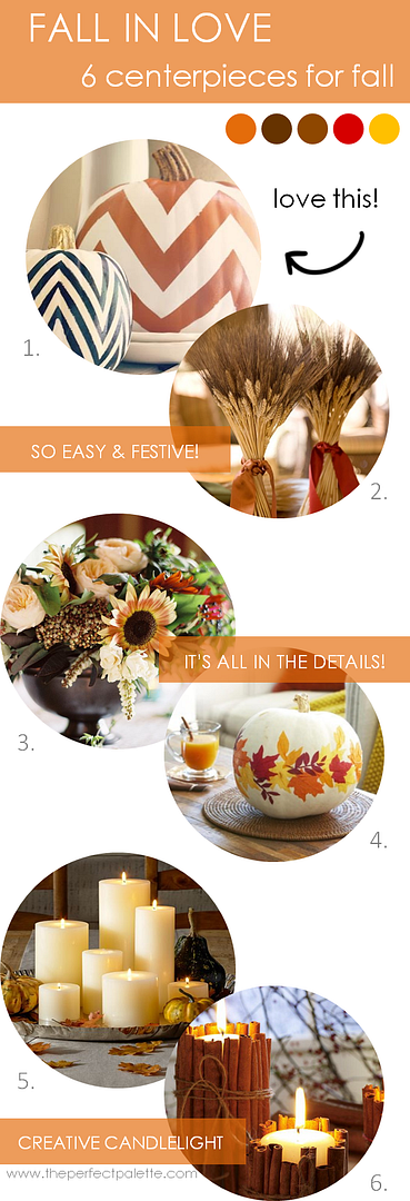 So today I thought I'd share 6 creative (and easy) centerpiece ideas for Fall! Because you can never have too many Fall pretties! Am I right? And it's always fun to think of creative ways to switch things up from year to year. Unique, colorful, and all kinds of pretty, these festive ideas are sure to spruce up those tables of yours!
