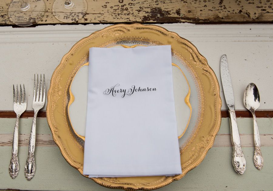 This lovely scene unfolded in the beautiful state of Oregon. Just one look at this pretty pine and cedar filled backdrop and I'm instantly feeling inspired. This tablescape. Can we all just take another look at this tablescape? A distressed tabletop was the perfect contrast to the more polished pieces like this amazing antique gold china. Perfect Planning Weddings + Events really did incorporate these warm and vibrant pops of color so nicely. To me, this shoot exudes an effortless elegance.