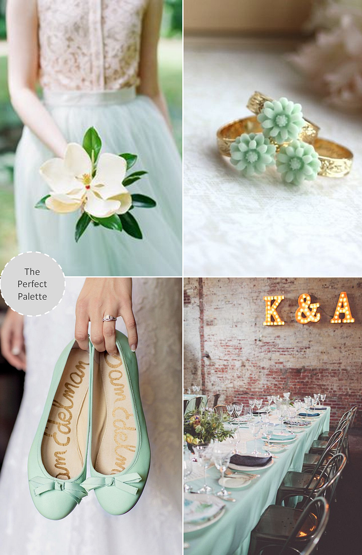 {magnolia bouquet | photo by jodi miller photography florals by jenn of sugar magnolias, 3 floral rings | marolsha, mint bow flats | photo by figlewicz photography, shoes by sam edelman via style me pretty, gorgeous reception tables | chris spira photography, event planning by melissa mcneeley via 100 layer cake}