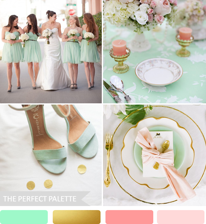 Hi friends and happy almost Friday to you! You'll be glad to know that my love affair with mint is still going strong! Especially when paired with peach and gold tones like this. If you're looking for a romantic palette that will work for Spring or Summer, then perhaps you should consider a color palette like this one. Elegant and oh-so sweet, these colors were just made to go hand in hand.