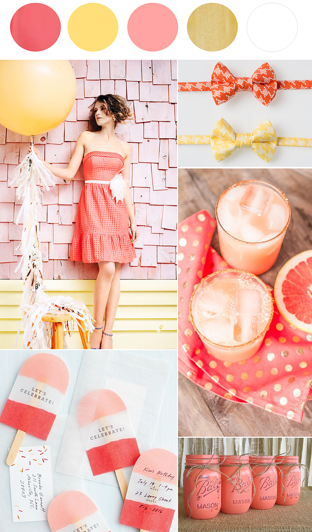 Hi, guys. Just popping in to give you your daily dose of color! Summer is around the corner and so I thought it would be kinda fun to start putting together some new and fun palettes for the upcoming season! Like this coral and yellow scheme. It's bright, it's vibrant, and it certainly has a "let's celebrate" vibe. Oh, and can we just pause for a second and discuss these adorable bow ties? Bow ties are like my favorite thing ever. But in these colors? Yeah, my love just got taken to a whole new level. I'm kinda obsessed.
