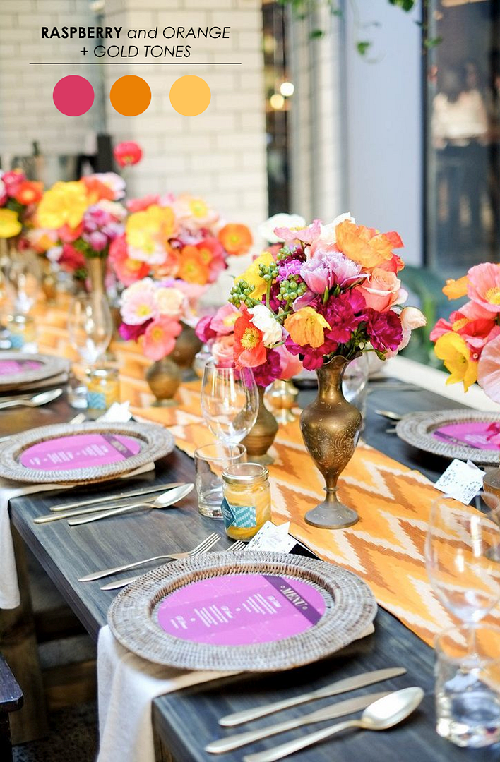 15. Raspberry and Pink + Ivory: If you're looking for a pretty Autumn palette, then this just might be "the one." Raspberry makes the perfect compliment to these softer pinks. Wouldn't you agree? It's a rich and rustic look that will never grow old for me.
