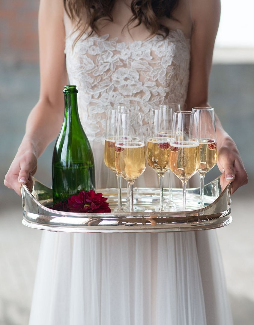"We brought together light with dark, rich reds with deep browns, and icy silver with winter white. The Cotton Mill served as the perfect venue with its bright 2 story windows and deep dark wood and brick."