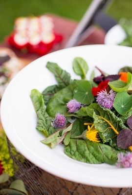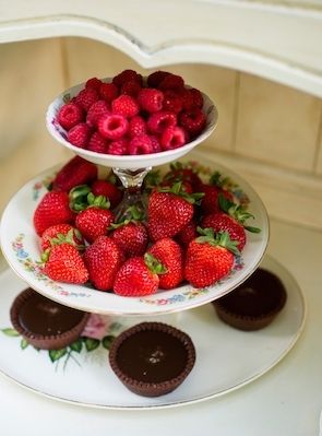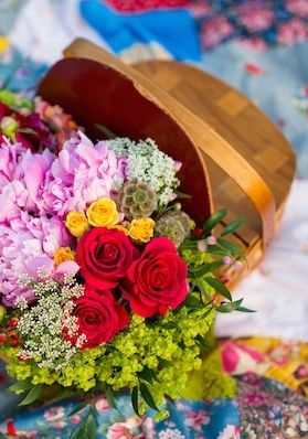 From the designer, "The beautiful wild green farmland made for the perfect backdrop for this colorful fete. I was inspired by all the bright colors of the season including the beautiful berry tones and the colors that the fresh vegetables provide. Instead of sticking to a two or three color palette I went with multi-color because I wanted big impact."