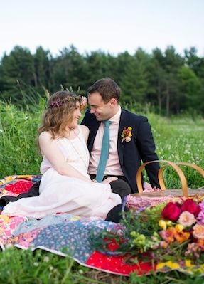 Shot in the early part of Summer, this styled shoot incorporates a lot of color! And you know I'm loving that. From the flowers to the food, to the fabrics and décor, this is the sort of stuff that wedding dreams are made of.