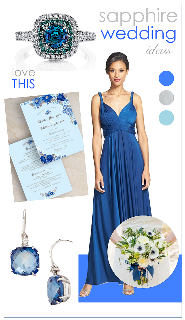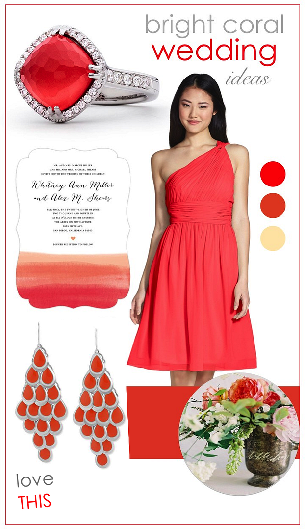{Coral}: Ring: PGI // Bridesmaid Dress: Donna Morgan // Invitations: Evermine // Earrings: Macy's // Centerpiece: Jessica Sloane Event Design // {Emerald}: // Ring: PGI // Bridesmaid Dress: Donna Morgan // Cake: via Brides // Place Setting: Jacque Lynn Photography via Elizabeth Anne Designs // Earrings: Nina // {Sapphire}: Ring: PGI // Bridesmaid Dress: Dessy // Invitation: Appleberry Ink // Bouquet: Vivian Chen Photography via Fab You Bliss // Earrings: KALAN by Suzanne Kalan